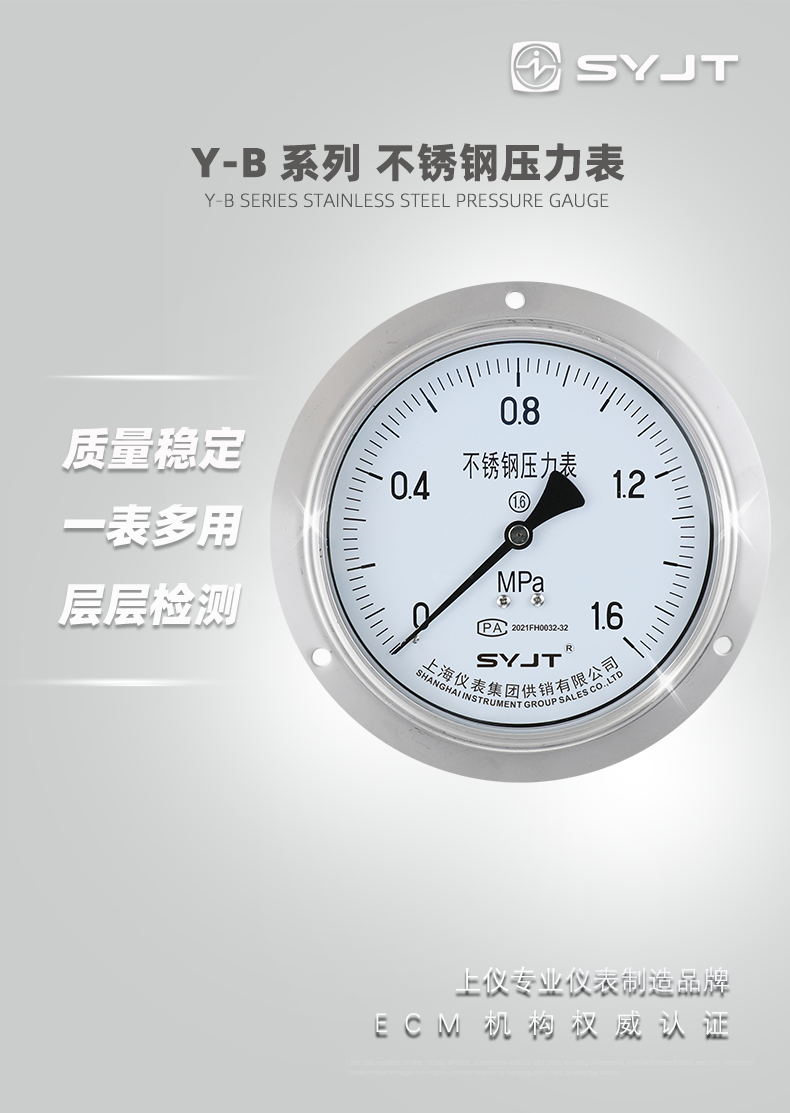 上儀集團(tuán)Y-153BF軸向帶邊不銹鋼壓力表,不銹鋼壓力表廣泛用于石油、化工、化纖、冶金、電站等工業(yè)部門中對耐腐、抗振有較高要求的工藝流程中測量各種流體介質(zhì)的壓力。本儀表的整體結(jié)構(gòu)設(shè)計(jì)合理、工藝精致,具有較高的測量**度和持久的穩(wěn)定性,因此不僅可提供出口,尤為國內(nèi)用戶對···