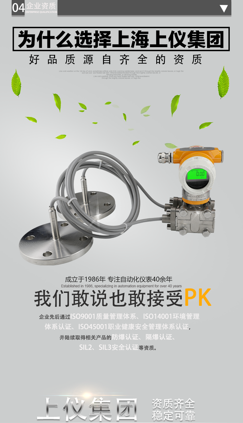 穩(wěn)定可靠:變送器采用全不銹鋼法蘭和專利技術(shù)的H合金護(hù)套傳感器,具有優(yōu)良的冷、熱穩(wěn)定性,確保了長期使用的可靠性。