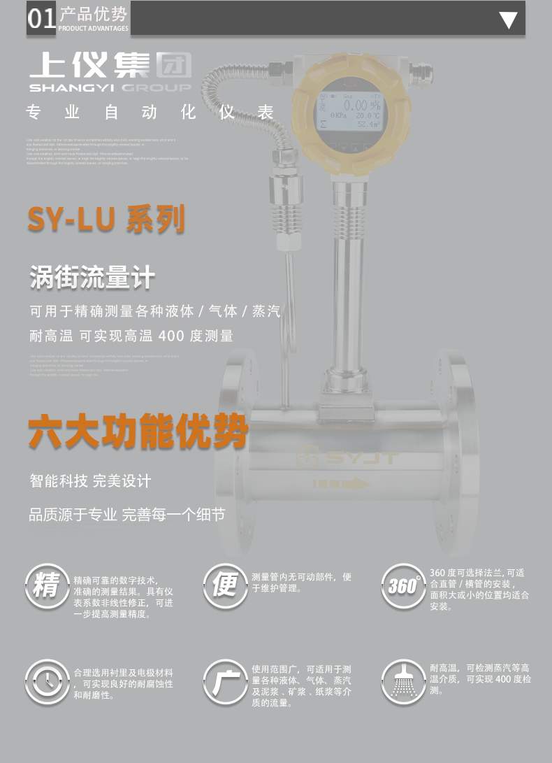 上儀渦街流量計(jì)集便攜性、高精度、智能化等多種優(yōu)勢(shì)于一身,是目前性價(jià)比較高、使用較為廣泛的流量計(jì)產(chǎn)品。