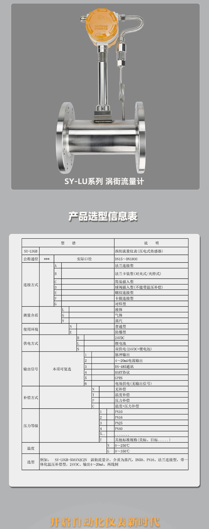 上儀集團(tuán)作為國(guó)內(nèi)知名的流量計(jì)制造商,其生產(chǎn)的渦街流量計(jì)也具有許多優(yōu)點(diǎn):結(jié)構(gòu)緊湊采用一體化夾纈式設(shè)計(jì),無(wú)需直管段,安裝維護(hù)方便,占用空間小。測(cè)量精度高普通型可達(dá)±0.5%讀數(shù),高精度型可達(dá)±0.2%讀數(shù),滿足絕大部分工業(yè)應(yīng)用需求。量程比大通常量程比可達(dá)1:20,比普通渦街流量計(jì)更寬···