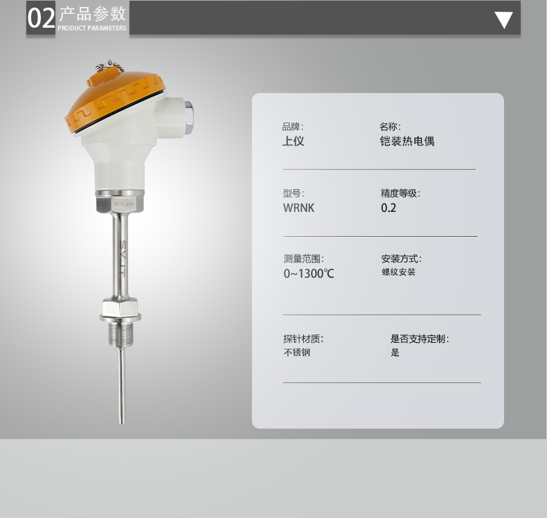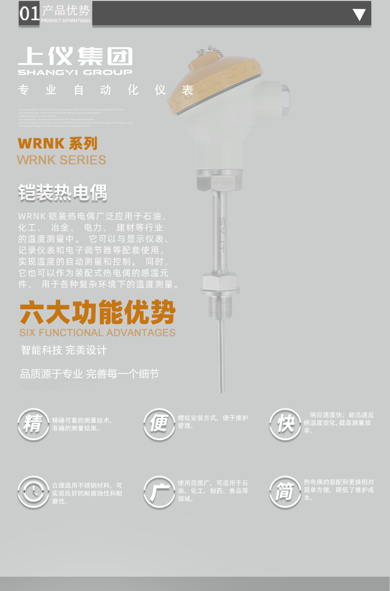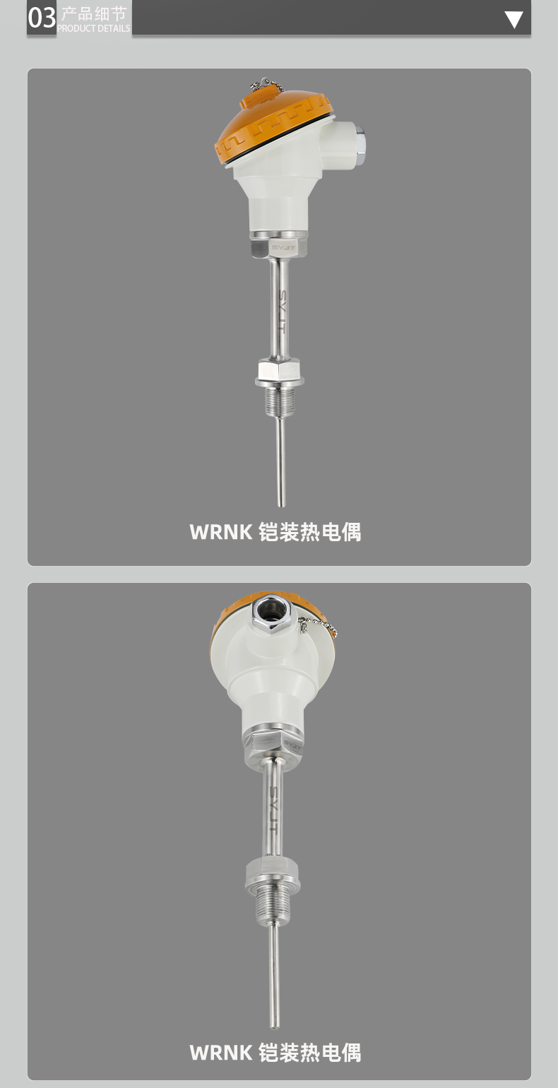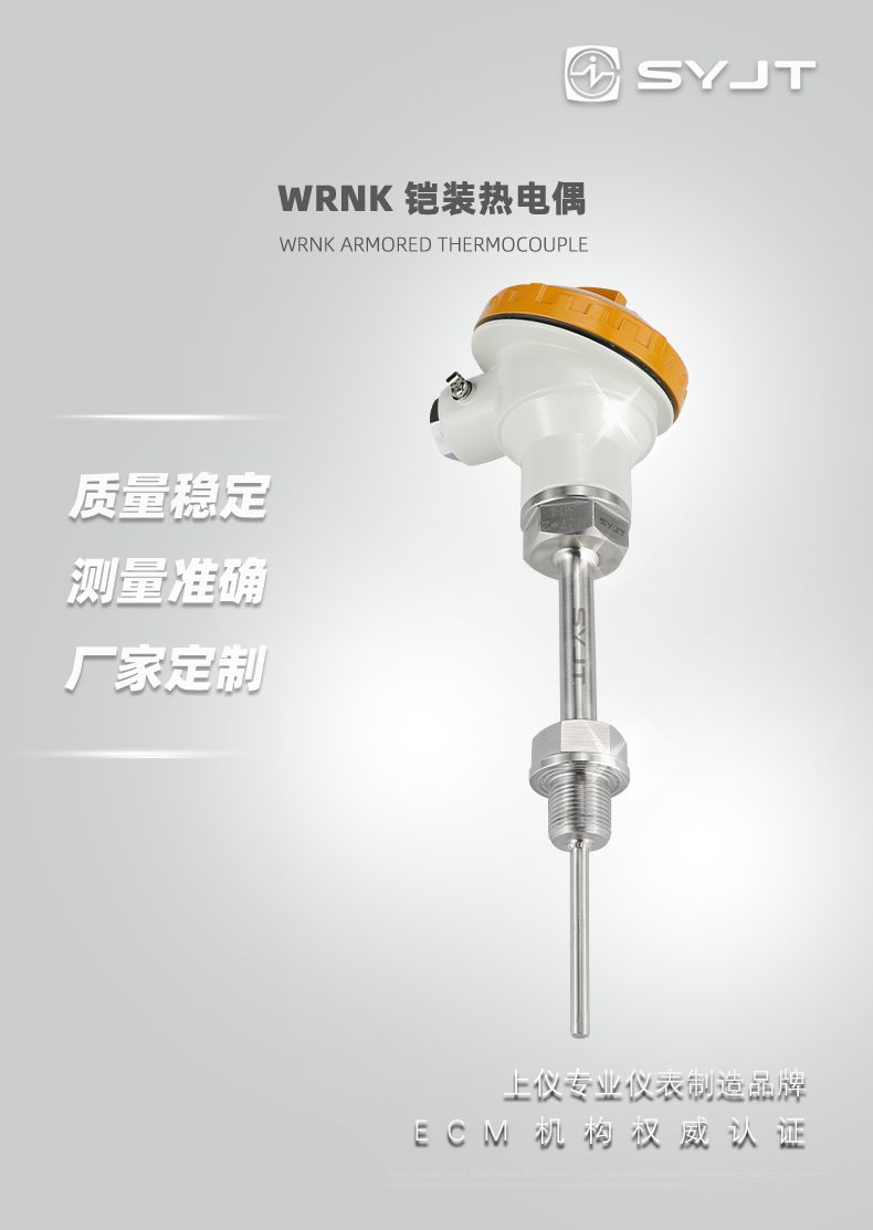 鎧裝熱電偶的結(jié)構(gòu)是由導(dǎo)體,絕緣氧化鎂和1Cr18Ni9Ti不銹鋼保護管經(jīng)多次拉制而成,鎧裝熱電偶產(chǎn)品主要由接線盒,接線端子和鎧裝熱電偶組成基本結(jié)構(gòu),并配以各種安裝固定裝置組成。