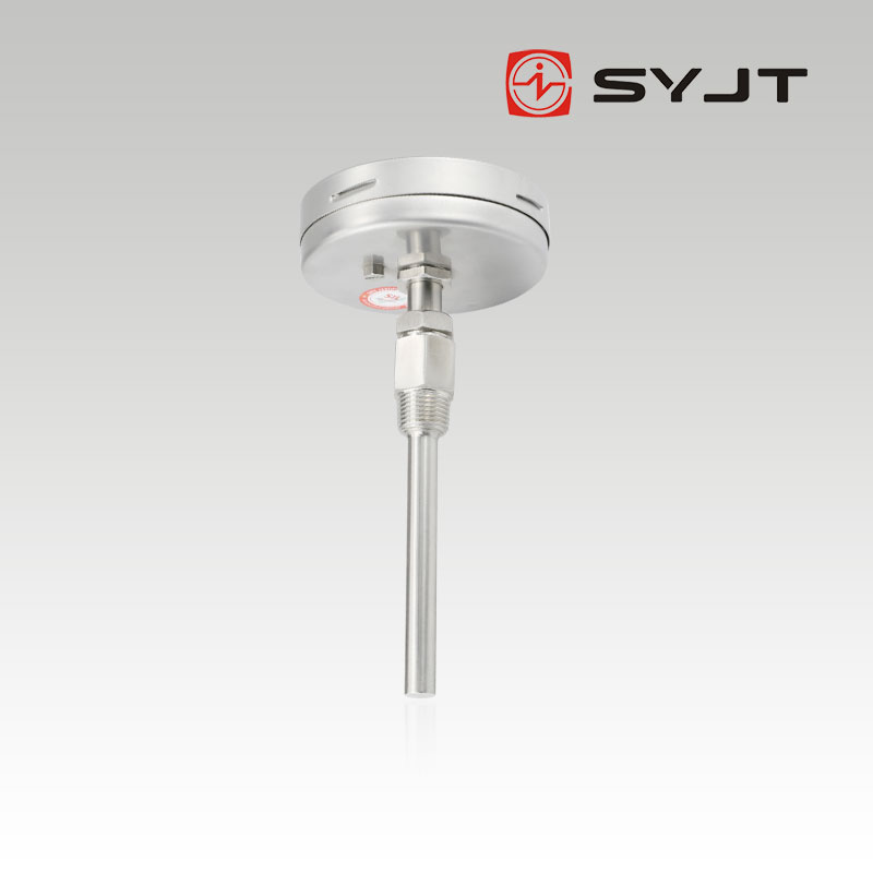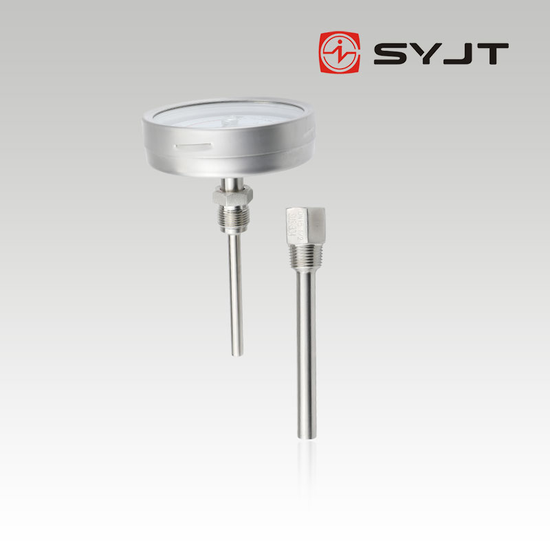 雙金屬溫度計(jì)是利用繞制成螺旋管狀的雙金屬片一端被固定,另一自由端與指針針連接,隨著溫度的變化而轉(zhuǎn)動(dòng),并帶動(dòng)指針旋轉(zhuǎn)指示溫度的單針式指示溫度計(jì)。