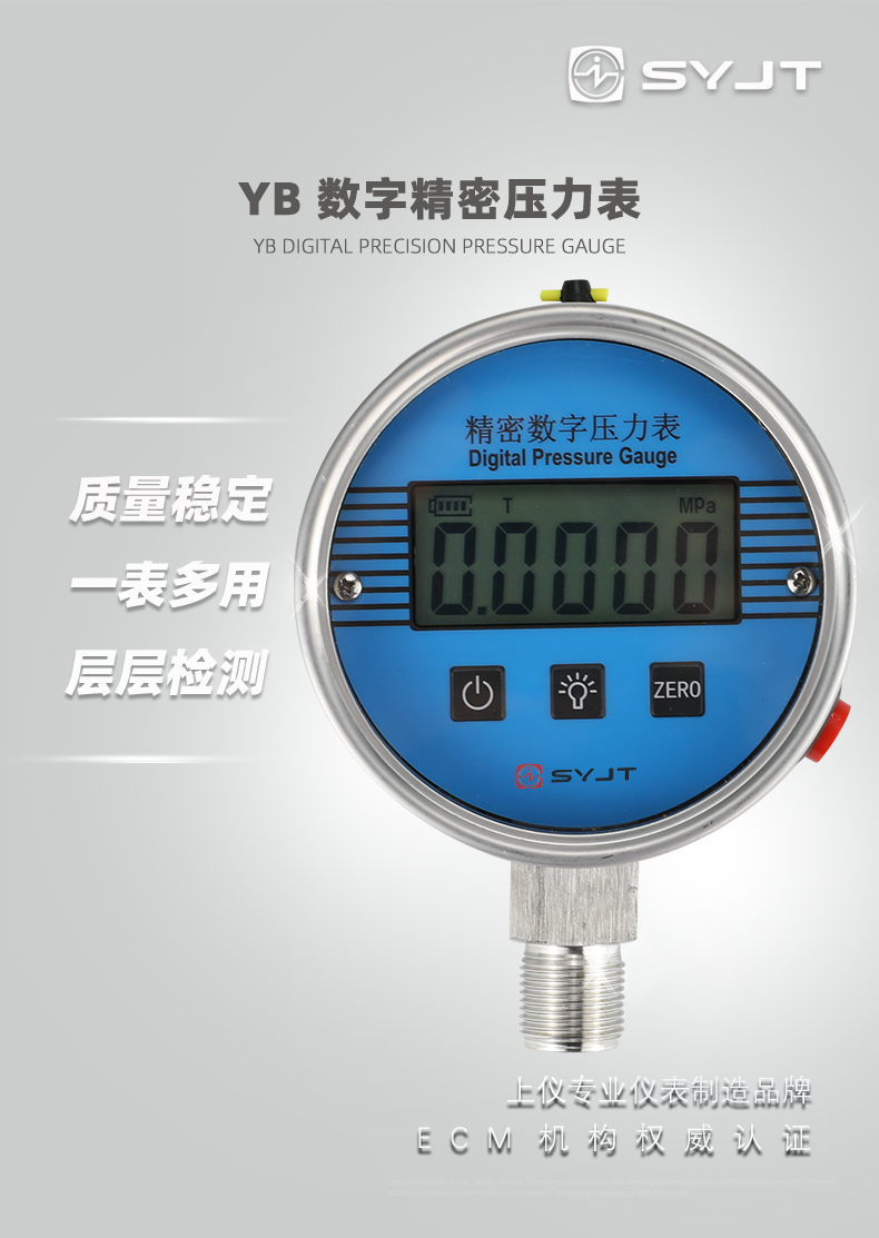 數(shù)字壓力表-數(shù)顯壓力表可用于表壓、絕壓、真空(負壓)的檢測,其品種及安裝形式多樣,能滿足各種測量需要,產(chǎn)品設(shè)計合理新穎、結(jié)構(gòu)緊湊、精度高、性能穩(wěn)定,實現(xiàn)儀表智能化??梢灾苯哟嬷羔槈毫Ρ?,尤其在腐蝕、振動等場所使用,更顯其超凡性能。該產(chǎn)品已在石油、化工、天然氣、機械、電力等*域得到廣泛應(yīng)用。是一種理想的現(xiàn)場測試儀表。智能數(shù)字壓力表技術(shù)先進,能使您摒棄指針式壓力表的諸多弊端,快步進入電子數(shù)字化時代。