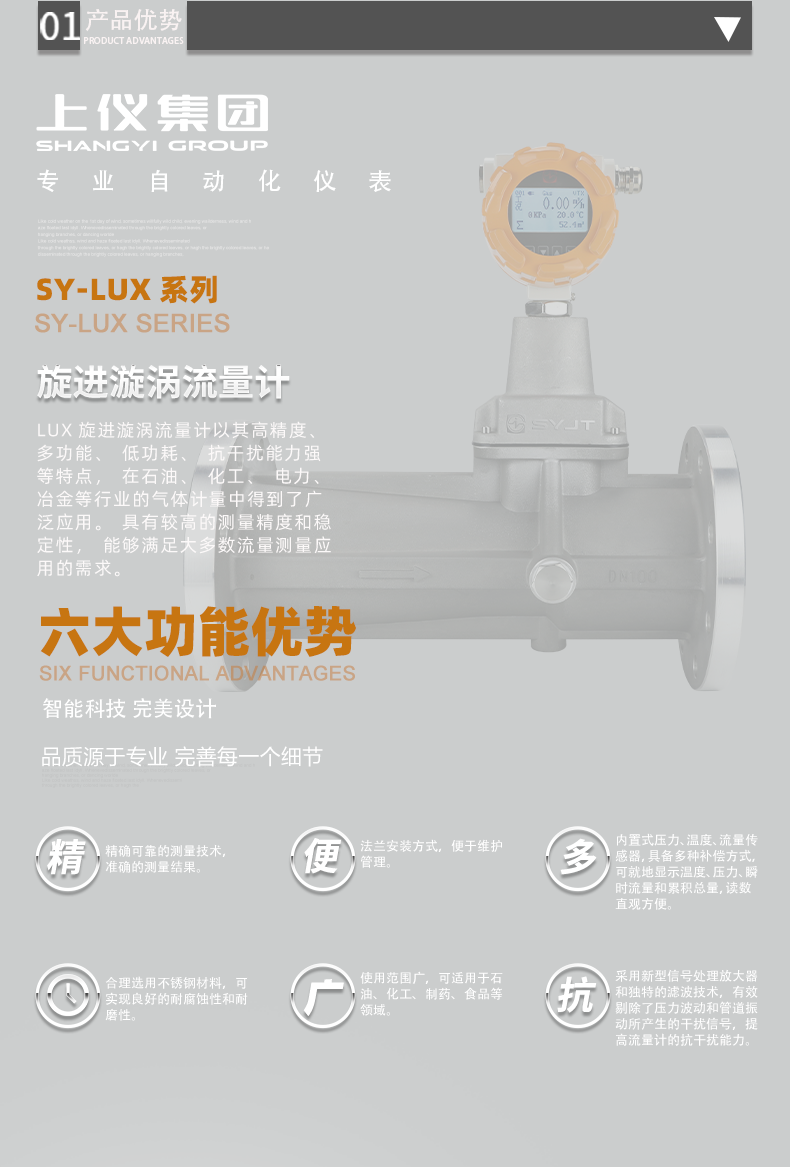 SY-LUX系列旋進(jìn)漩渦流量計(jì)結(jié)構(gòu)特點(diǎn):無(wú)機(jī)械可動(dòng)部件,耐腐蝕,穩(wěn)定可靠,壽命長(zhǎng),無(wú)須特殊維護(hù);實(shí)現(xiàn)了機(jī)電一體化,日常的計(jì)量過(guò)程不需人工值守;工藝安裝條件不苛刻,直管段可較孔板和渦街流量計(jì)大大縮短;流量測(cè)量范圍較寬(qmax/qmin=15~20)體積小、重量輕,離線標(biāo)定較為方便;測(cè)量···