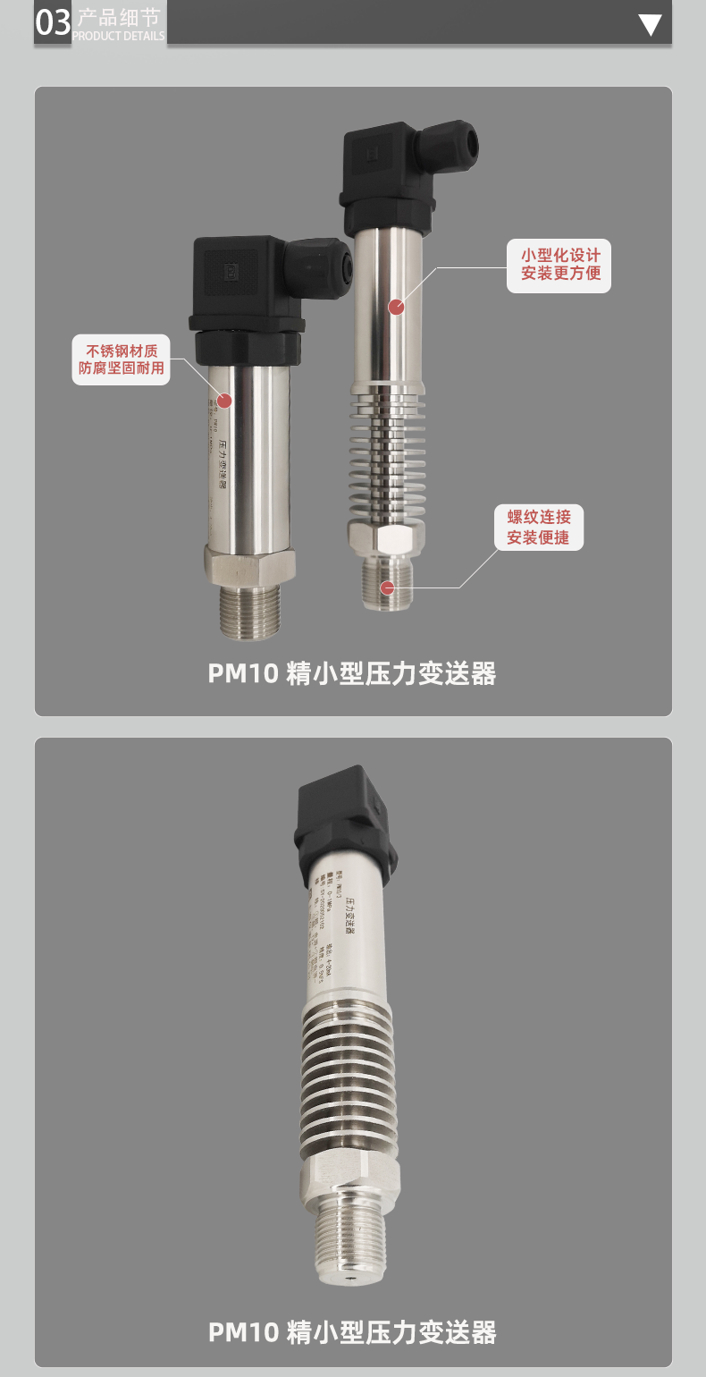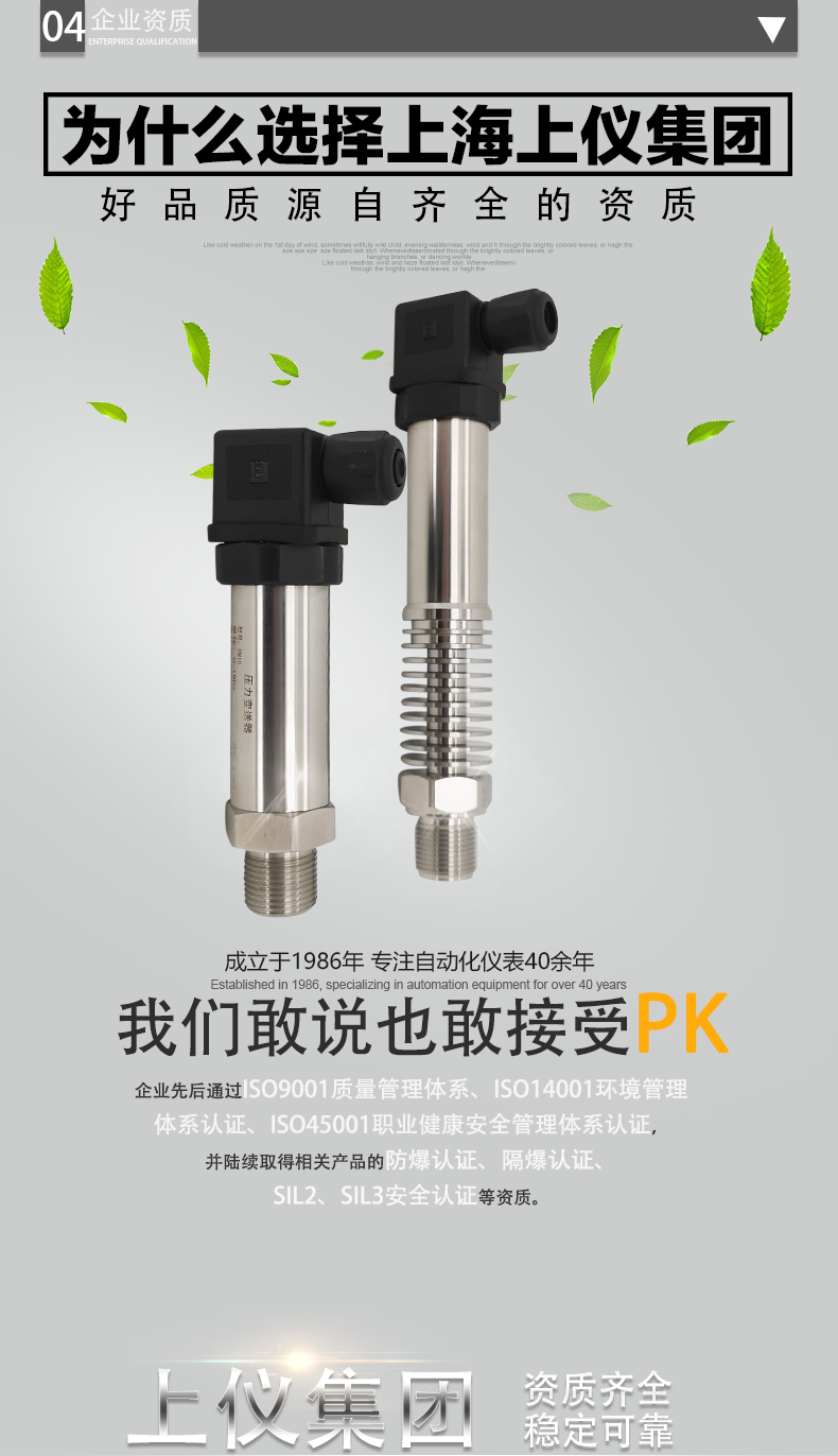 系列小型化壓力變送器采用具有*水平的進(jìn)口陶瓷壓阻傳感器或擴(kuò)散硅傳感器,配合高精度電子元件,經(jīng)嚴(yán)格的工藝過程裝配而成。采用無中介液的干式壓力測量技術(shù),充分發(fā)揮了陶瓷傳感器的技術(shù)優(yōu)勢,使PM10-基本型系列壓力變送器具有優(yōu)異的技術(shù)性能。穩(wěn)定性高,并具有很高的測量精度。PM···