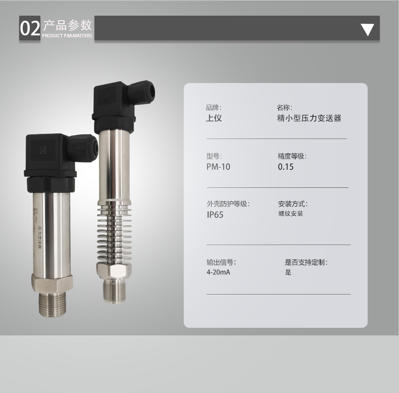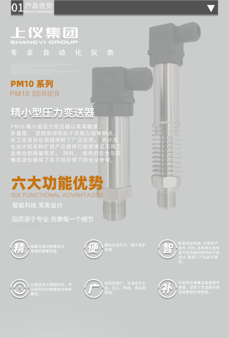 PM10-基本型壓力變送器系列小型化壓力變送器具有多種型號,多種量程,多種過程連接形式及材料??蓮V泛用于石油、化工、電力、冶金、制藥、食品等許多工業(yè)*域,可適應(yīng)工業(yè)測量的各種場合及介質(zhì),是傳統(tǒng)壓力表及傳統(tǒng)壓力變送器的理想升***換代產(chǎn)品,是工業(yè)自動(dòng)化*域理想的壓力測量儀表。